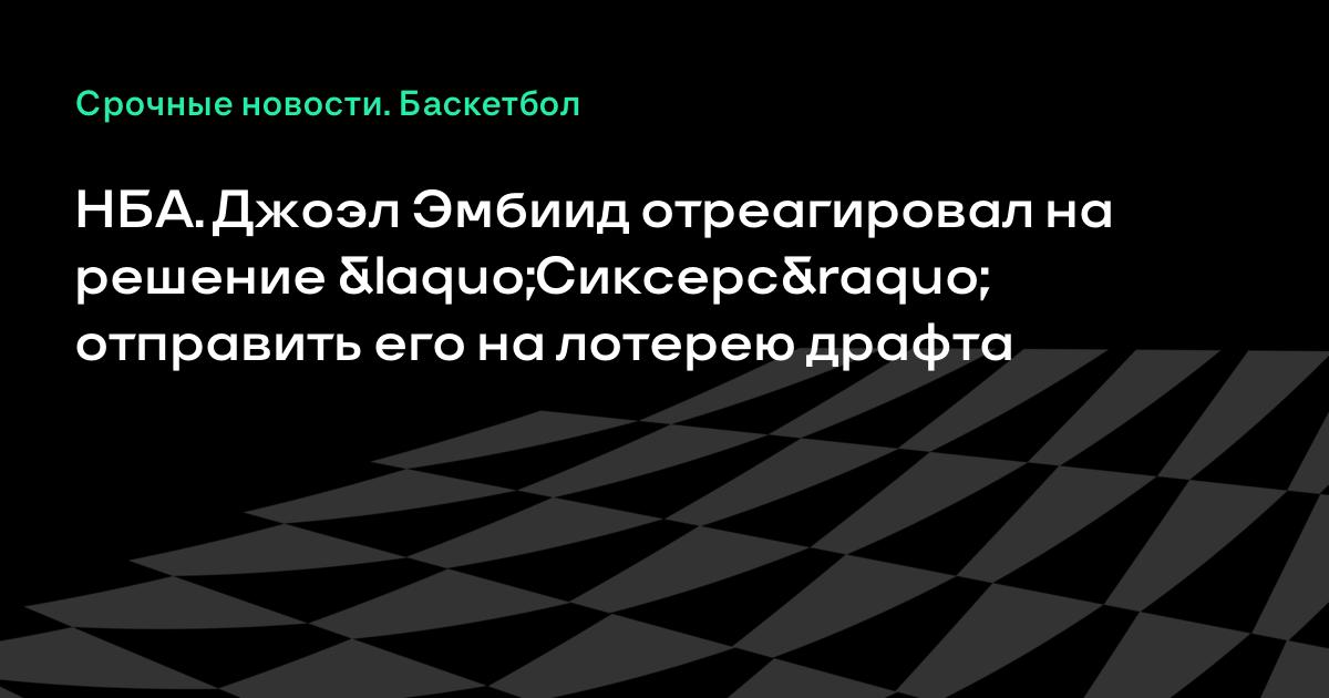 Центровой Джоэл Эмбиид будет представлять «Сиксерс» на предстоящей лотерее драфта, сообщает The Philadelphia Inquirer.