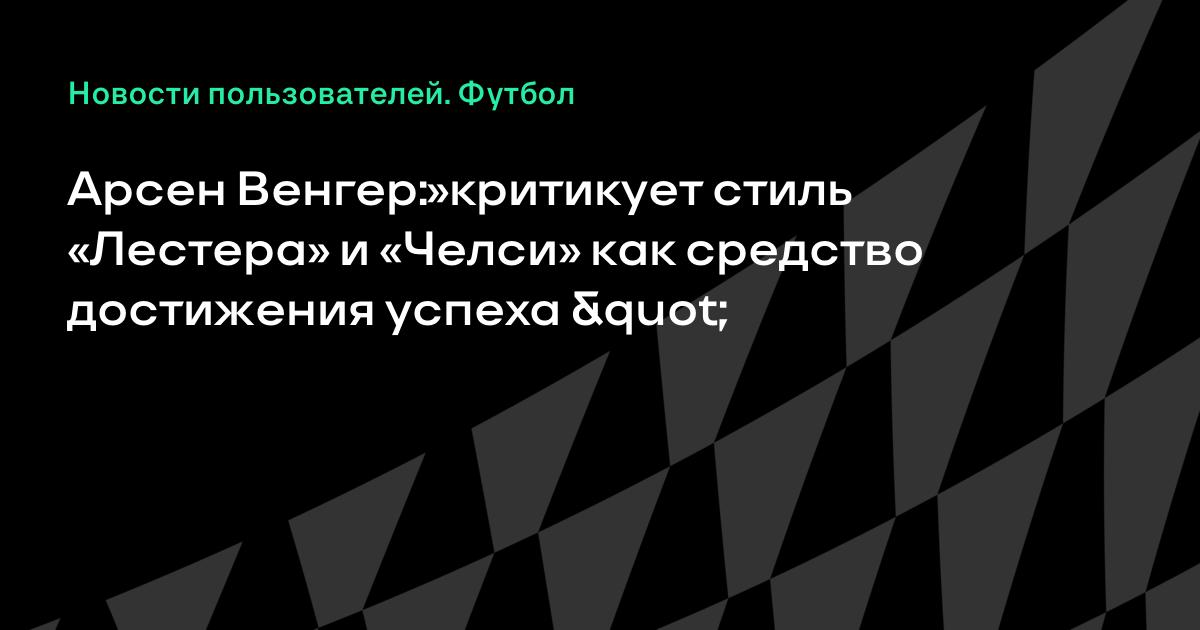 Арсен Венгер:»критикует стиль «Лестера» и «Челси» как средство достижения успеха "