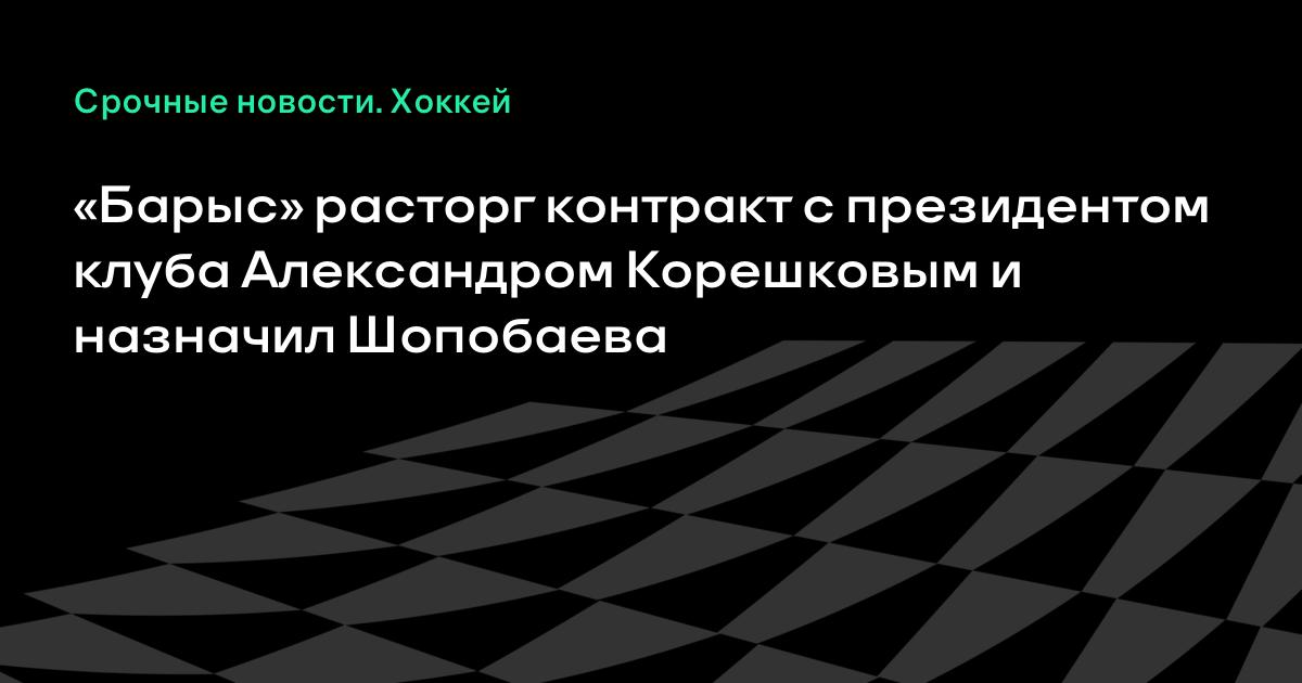 «Барыс» расторг контракт с президентом клуба Александром Корешковым и назначил Шопобаева
