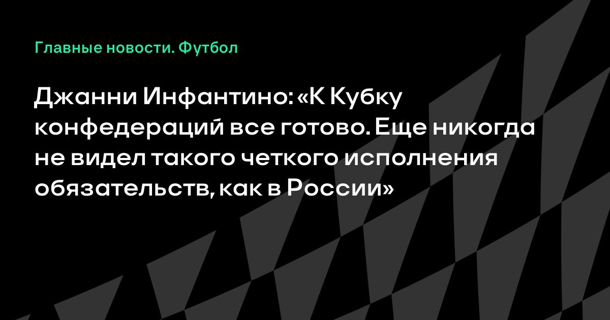 Джанни Инфантино: «К Кубку конфедераций все готово. Еще никогда не видел такого четкого исполнения обязательств, как в России»