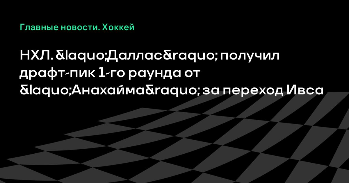 НХЛ. «Даллас» получил драфт-пик 1-го раунда от «Анахайма» за переход Ивса