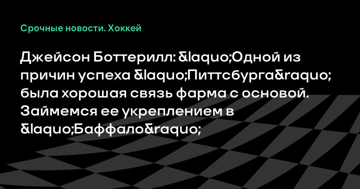 Джейсон Боттерилл: «Одной из причин успеха «Питтсбурга» была хорошая связь фарма с основой. Займемся ее укреплением в «Баффало»