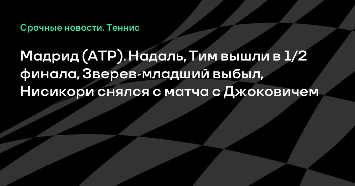 Мадрид (АТР). Надаль, Тим вышли в 1/2 финала, Зверев-младший выбыл, Нисикори снялся с матча с Джоковичем