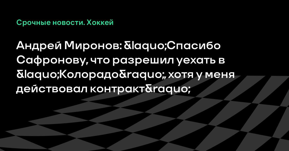 Андрей Миронов: «Спасибо Сафронову, что разрешил уехать в «Колорадо», хотя у меня действовал контракт»