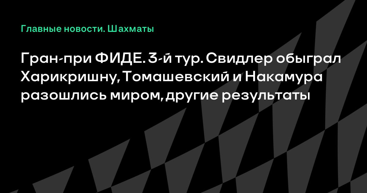 Гран-при ФИДЕ. 3-й тур. Свидлер обыграл Харикришну, Томашевский и Накамура разошлись миром, другие результаты