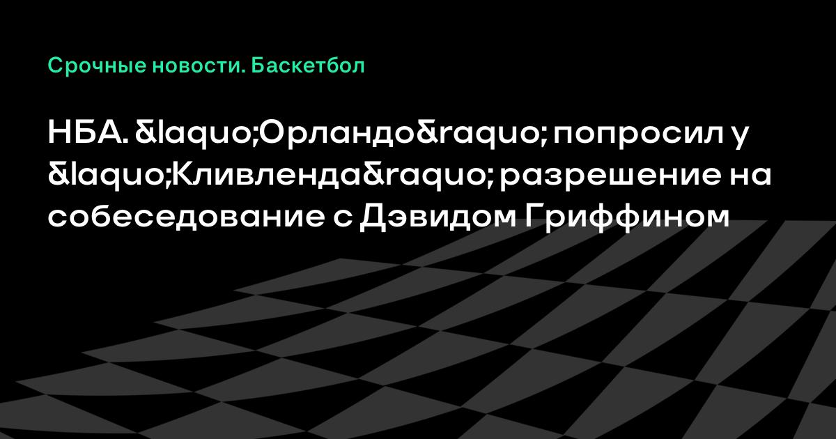 «Орландо» рассматривает Дэвида Гриффина как кандидата на должность президента по баскетбольным операциям и попросил у «Кавальерс» разрешение на собеседование с их генеральным менеджером, сообщает The Vertical.