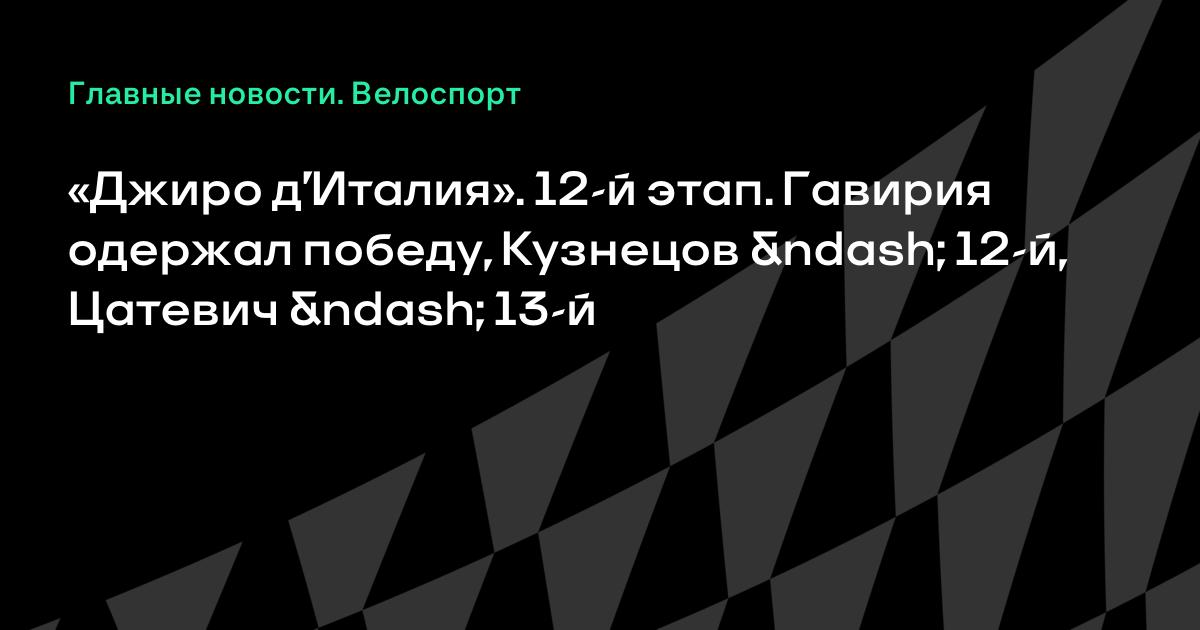 Сегодня состоялся 12-й этап многодневки «Джиро д’Италия». Пелотон проехал 229 км по равнине. Победу одержал колумбиец Фернандо Гавирия.
