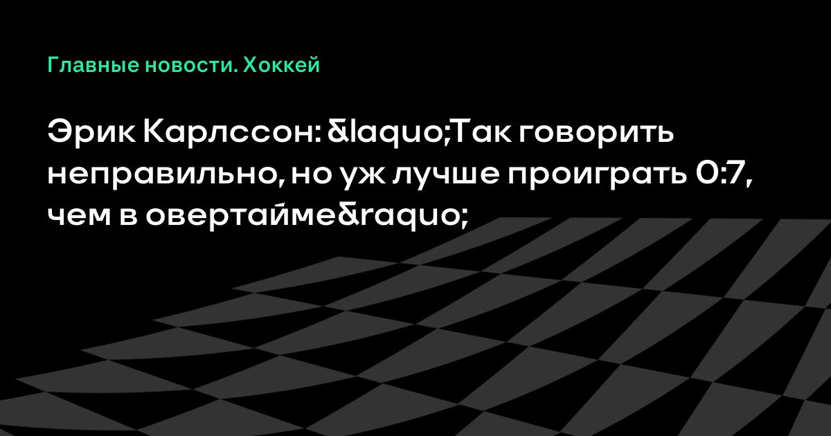 Эрик Карлссон: «Так говорить неправильно, но уж лучше проиграть 0:7, чем в овертайме»