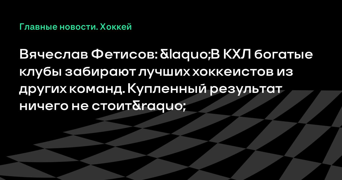 Вячеслав Фетисов: «В КХЛ богатые клубы забирают лучших хоккеистов из других команд. Купленный результат ничего не стоит»