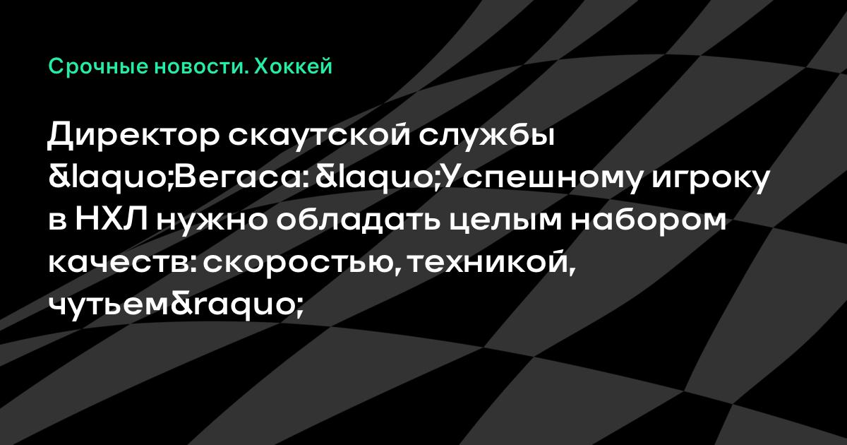 Директор скаутской службы «Вегаса: «Успешному игроку в НХЛ нужно обладать целым набором качеств: скоростью, техникой, чутьем»