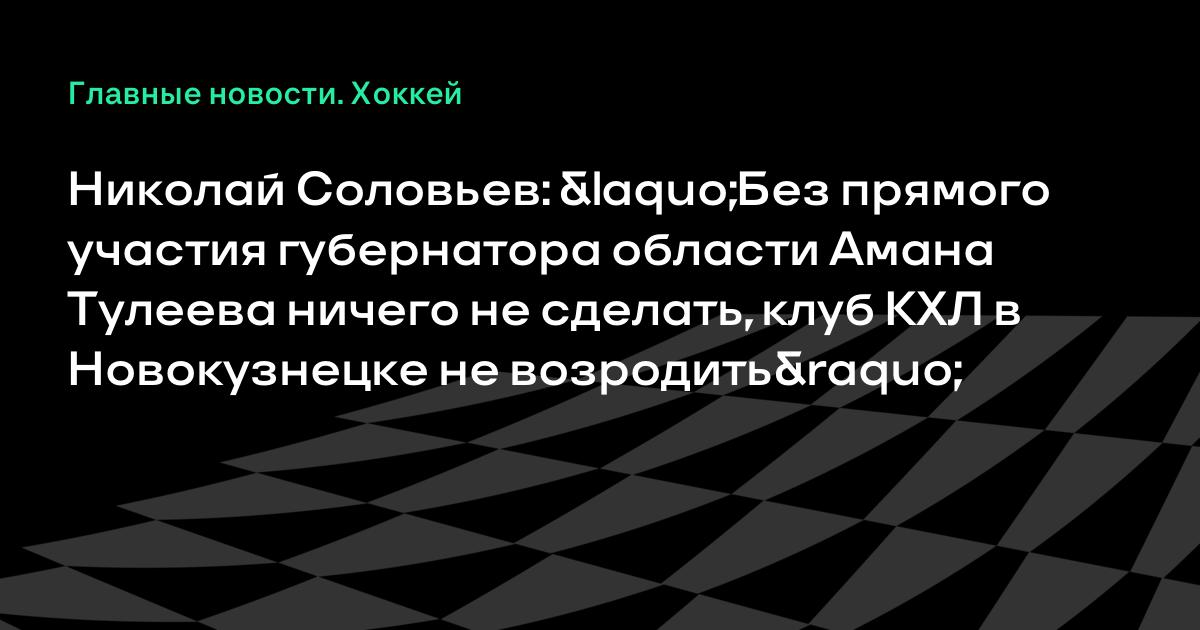 Чтобы в регионе был клуб КХЛ, им должен заниматься лично хотя бы губернатор области Аман Тулеев. Без его прямого участия ничего не сделать, клуб КХЛ в Новокузнецке не возродить. Все зависит от первого лица», – сказал Соловьев.