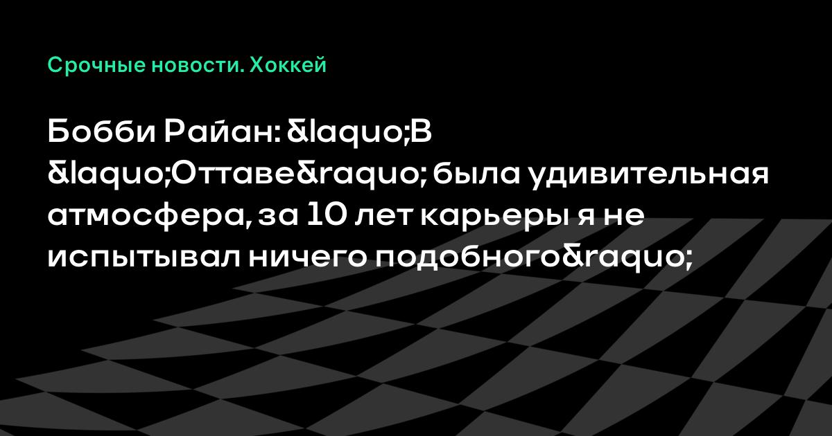 Бобби Райан: «В «Оттаве» была удивительная атмосфера, за 10 лет карьеры я не испытывал ничего подобного»
