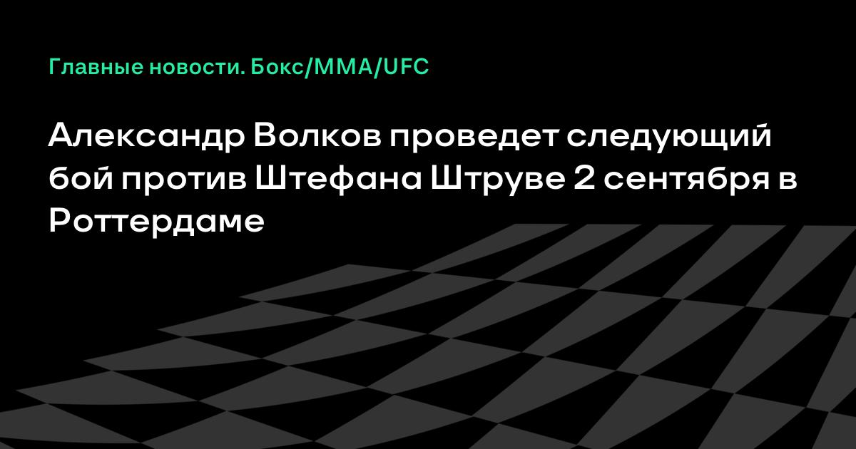 Поединок российского тяжеловеса Александра Волкова против Штефана Штруфе станет главным событием вечера UFC в Роттердаме, назначенного на 2 сентября, сообщает официальный сайт организации.
