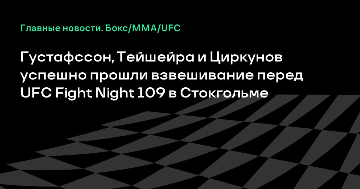 Густафссон, Тейшейра и Циркунов успешно прошли взвешивание перед UFC Fight Night 109 в Стокгольме