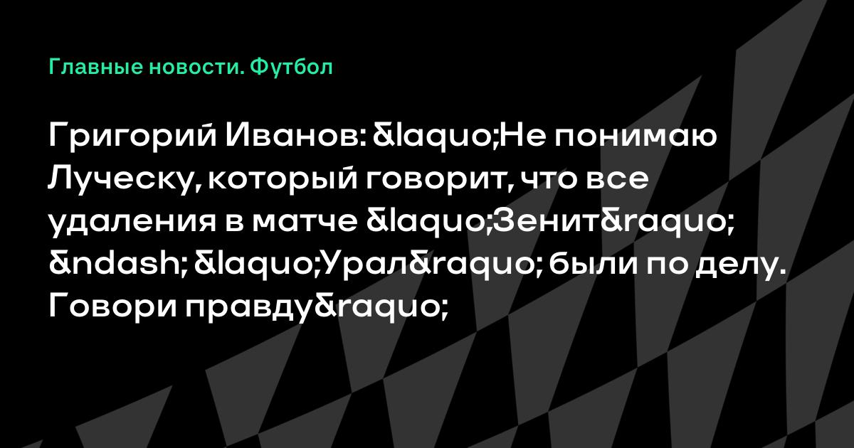 Григорий Иванов: «Не понимаю Луческу, который говорит, что все удаления в матче «Зенит» – «Урал» были по делу. Говори правду»