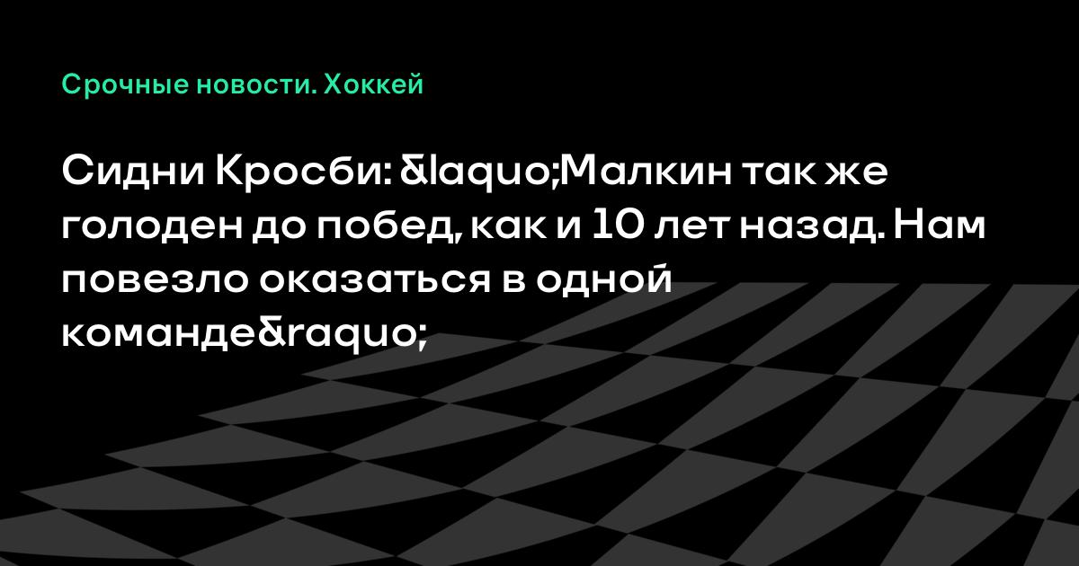 Сидни Кросби: «Малкин так же голоден до побед, как и 10 лет назад. Нам повезло оказаться в одной команде»