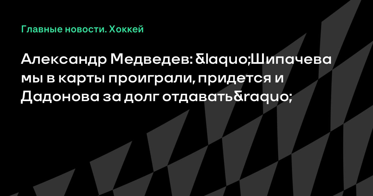 Александр Медведев: «Шипачева мы в карты проиграли, придется и Дадонова за долг отдавать»