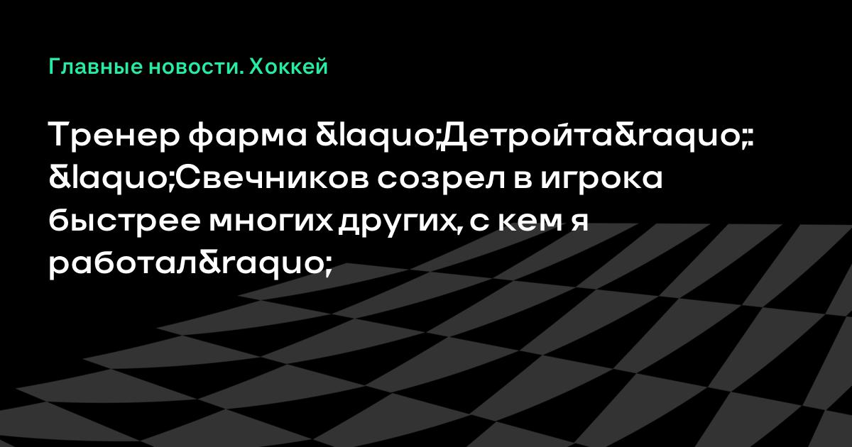 Тренер фарма «Детройта»: «Свечников созрел в игрока быстрее многих других, с кем я работал»