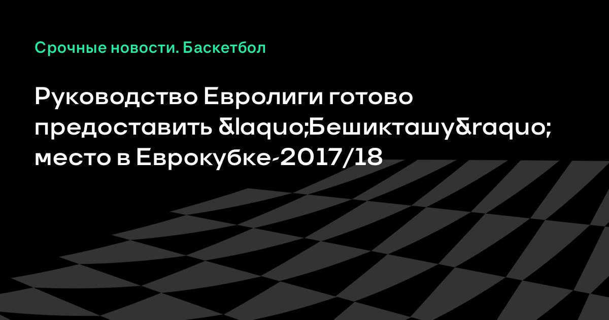 Руководство Евролиги готово предоставить «Бешикташу» место в Еврокубке-2017/18, сообщает Eurohoops.