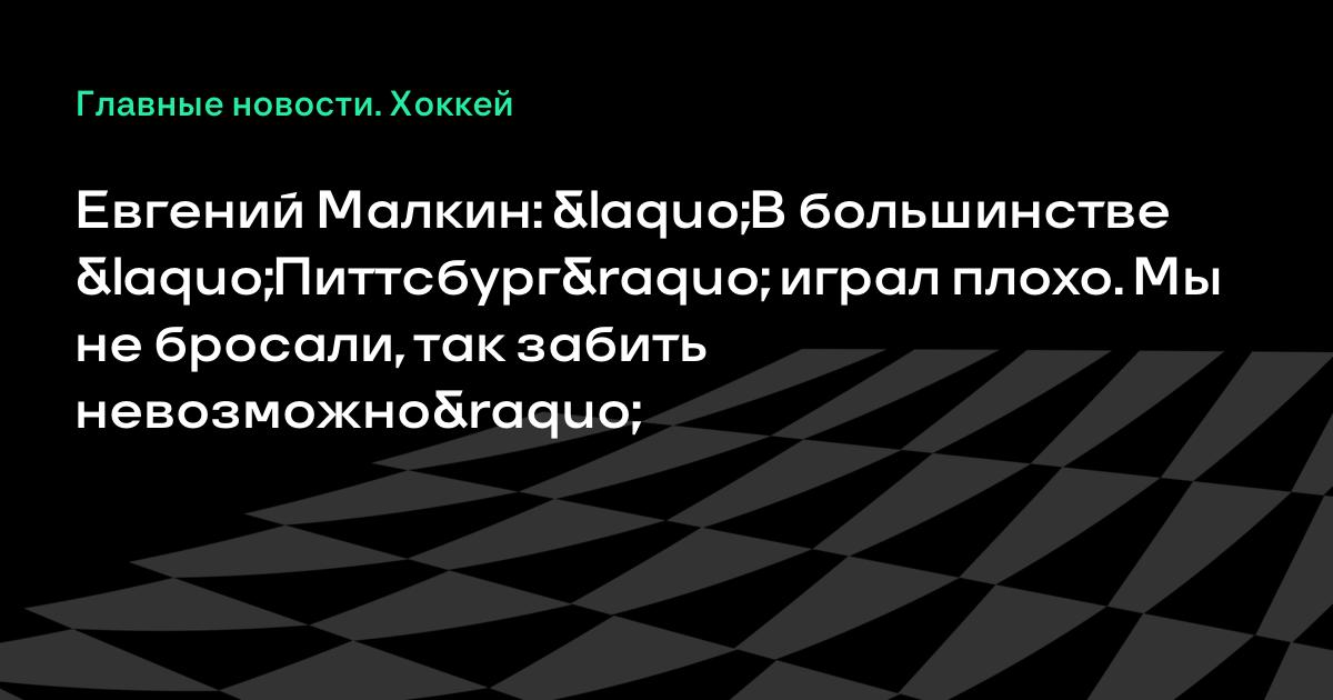 Евгений Малкин: «В большинстве «Питтсбург» играл плохо. Мы не бросали, так забить невозможно»