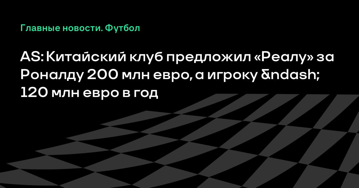 AS: Китайский клуб предложил «Реалу» за Роналду 200 млн евро, а игроку – 120 млн евро в год