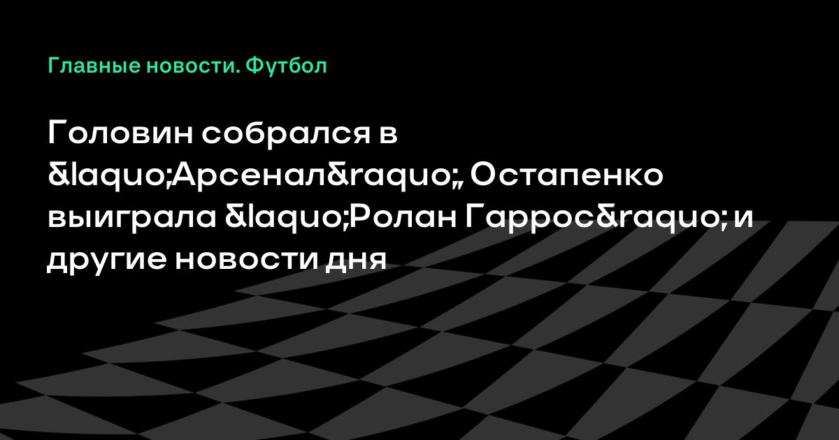 Головин собрался в «Арсенал», Остапенко выиграла «Ролан Гаррос» и другие новости дня