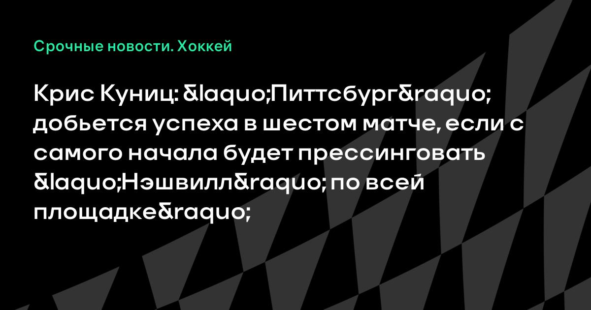 Форвард «Питтсбурга» Крис Куниц поделился ожиданиями от шестого матча финальной серии Кубка Стэнли против «Нэшвилла» (3-2).