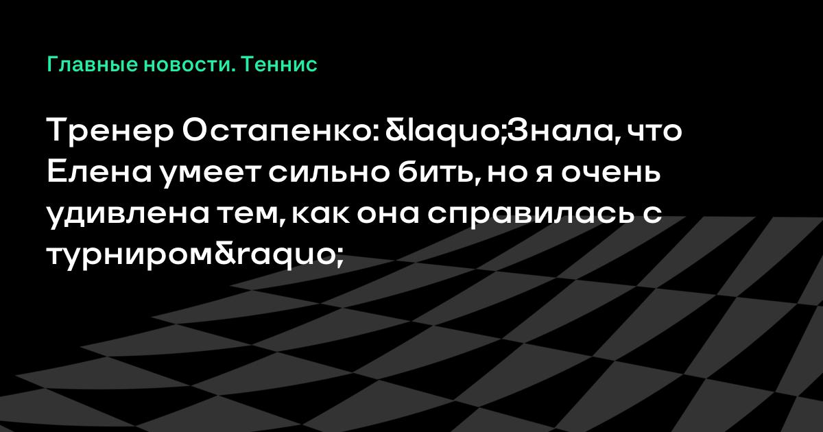 Тренер Остапенко: «Знала, что Елена умеет сильно бить, но я очень удивлена тем, как она справилась с турниром»