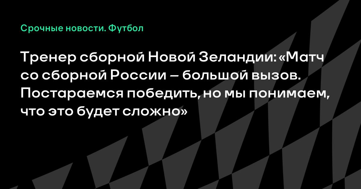 Тренер сборной Новой Зеландии: «Матч со сборной России – большой вызов. Постараемся победить, но мы понимаем, что это будет сложно»