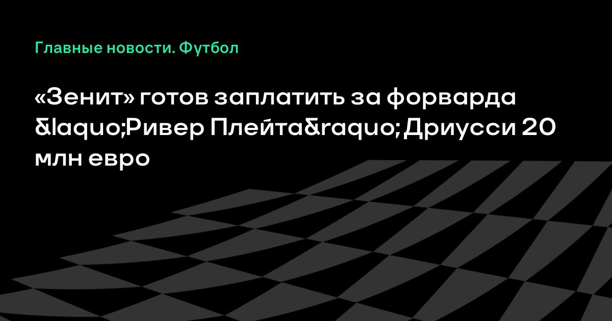 «Матч ТВ» отмечает, что «Зенит» уже сделал официальное предложение «Ривер Плейту» по поводу трансфера нападающего Себастьяна Дриусси. Клуб готов заплатить за игрока 20 миллионов евро.