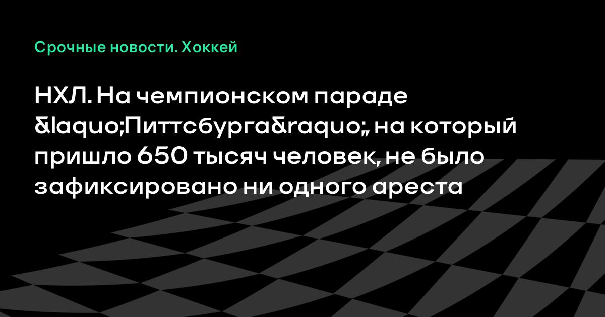 НХЛ. На чемпионском параде «Питтсбурга», на который пришло 650 тысяч человек, не было зафиксировано ни одного ареста