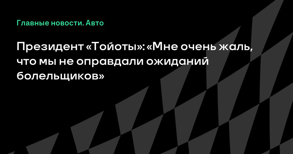 Президент «Тойоты»: «Мне очень жаль, что мы не оправдали ожиданий болельщиков»