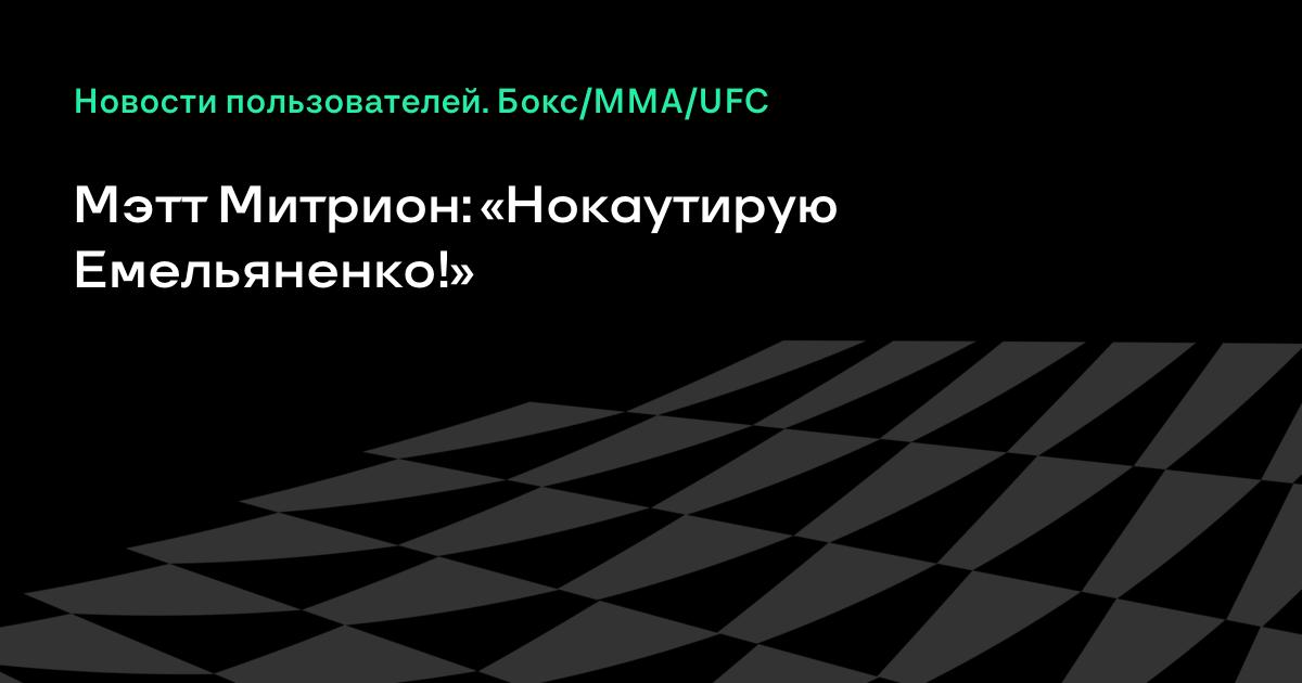 Мэтт Митрион: «Нокаутирую Емельяненко!»