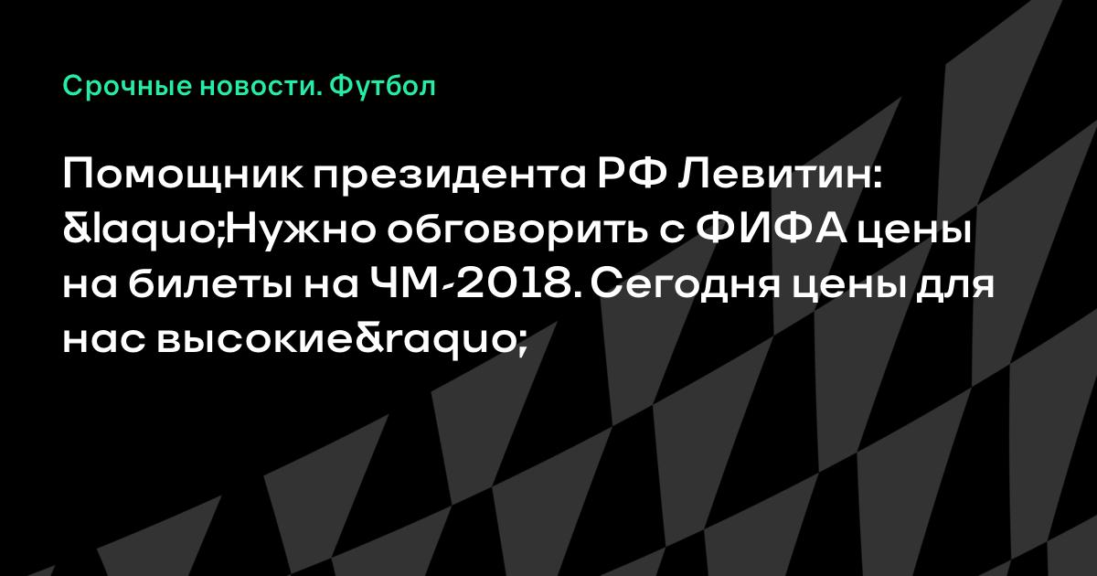 Помощник президента РФ Левитин: «Нужно обговорить с ФИФА цены на билеты на ЧМ-2018. Сегодня цены для нас высокие»
