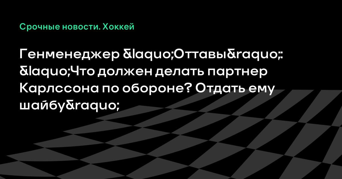 Генменеджер «Оттавы»: «Что должен делать партнер Карлссона по обороне? Отдать ему шайбу»