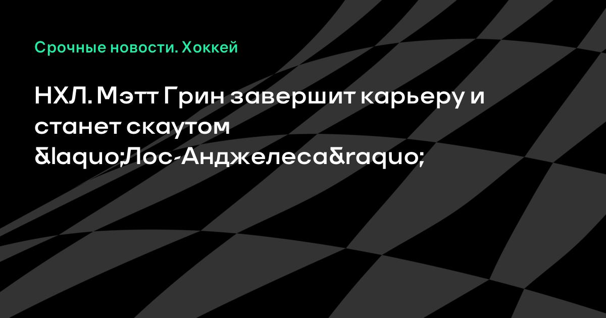 НХЛ. Мэтт Грин завершит карьеру и станет скаутом «Лос-Анджелеса»