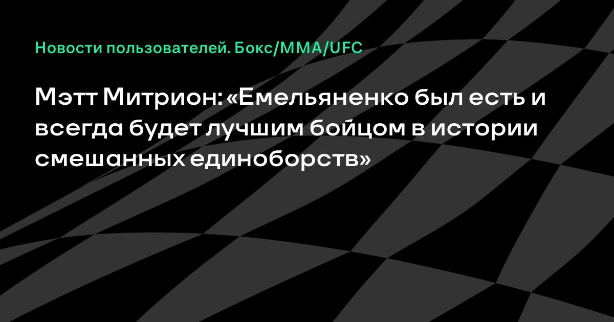 Мэтт Митрион: «Емельяненко был есть и всегда будет лучшим бойцом в истории смешанных единоборств»