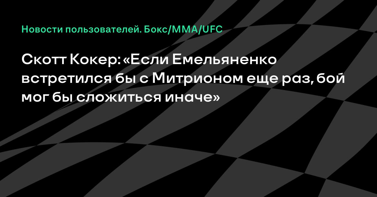 Скотт Кокер: «Если Емельяненко встретился бы с Митрионом еще раз, бой мог бы сложиться иначе»