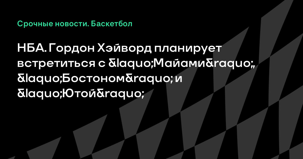 Свингмен «Джаз» Гордон Хэйворд не хочет затягивать решение по поводу продолжения своей карьеры. В первые дни после того, как он станет свободным агентом, Хэйворд планирует встретиться с тремя командами – «Майами», «Бостоном» и «Ютой» – и вскоре после это принять решение, пишет The Salt Lake Tribune.