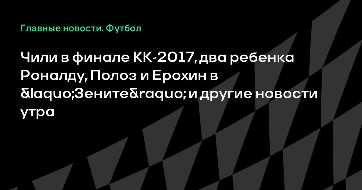 Чили в финале КК-2017, два ребенка Роналду, Полоз и Ерохин в «Зените» и другие новости утра