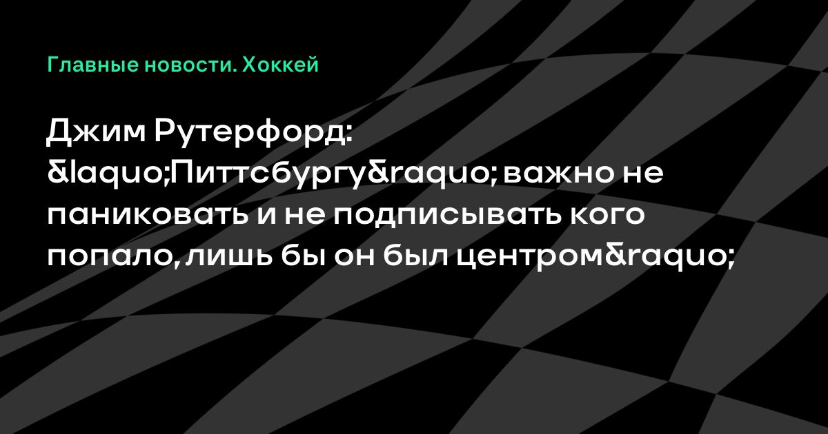 Джим Рутерфорд: «Питтсбургу» важно не паниковать и не подписывать кого попало, лишь бы он был центром»