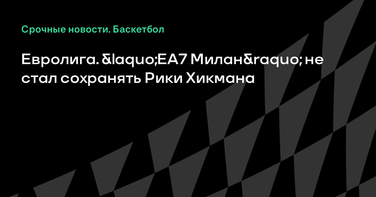 4 июля 2017, 12:06 Евролига. «ЕА7 Милан» не стал сохранять Рики Хикмана «ЕА7 Милан» не стал пользоваться опцией продления в контракте защитника Рики Хикмана, сообщает Eurohoops. Чемпион Евролиги в составе «Маккаби» выходит на рынок свободных агентов. Источник: Eurohoops Баскетбол переходы Евролига чемпионат Италии Милан Рики Хикман