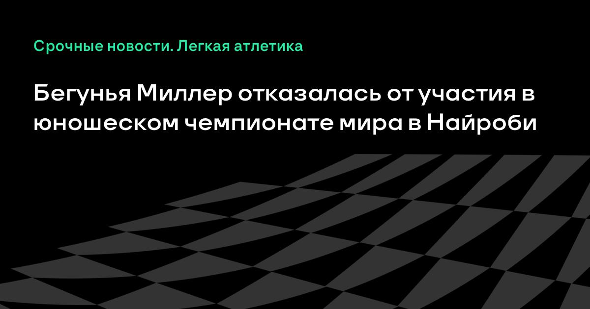 Российская бегунья Полина Миллер приняла решение не ехать на юношеский чемпионат мира в Кении.