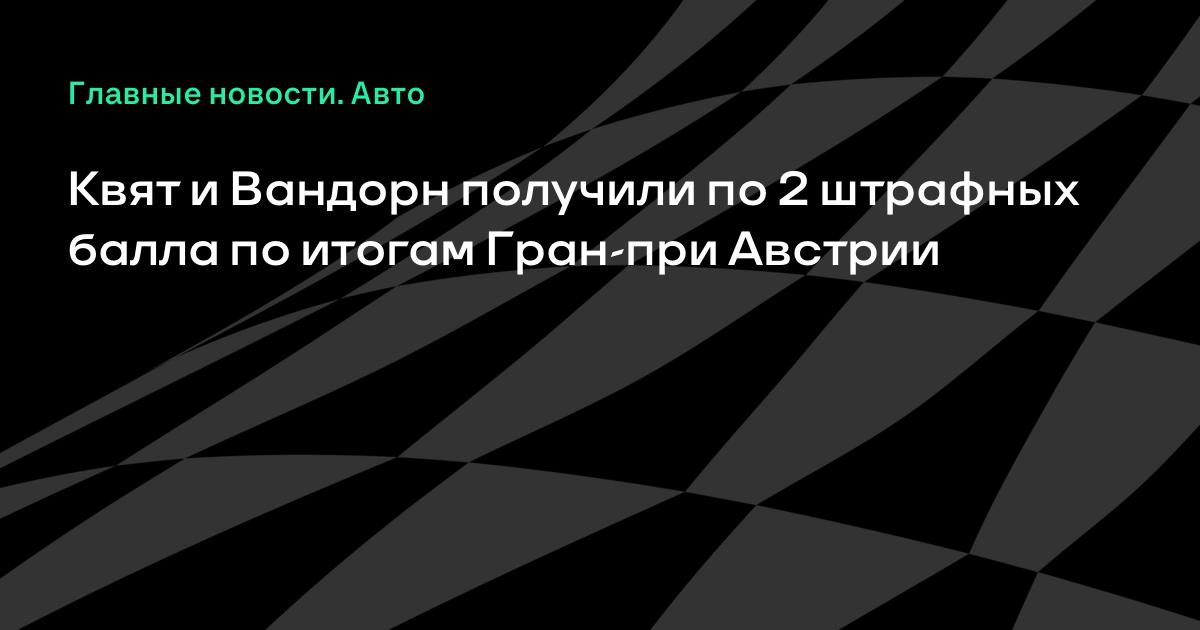 Пилоты «Макларена» и «Торо Россо» Стоффел Вандорн и Даниил Квят получили по два штрафных балла пол итогам Гран-при Австрии.