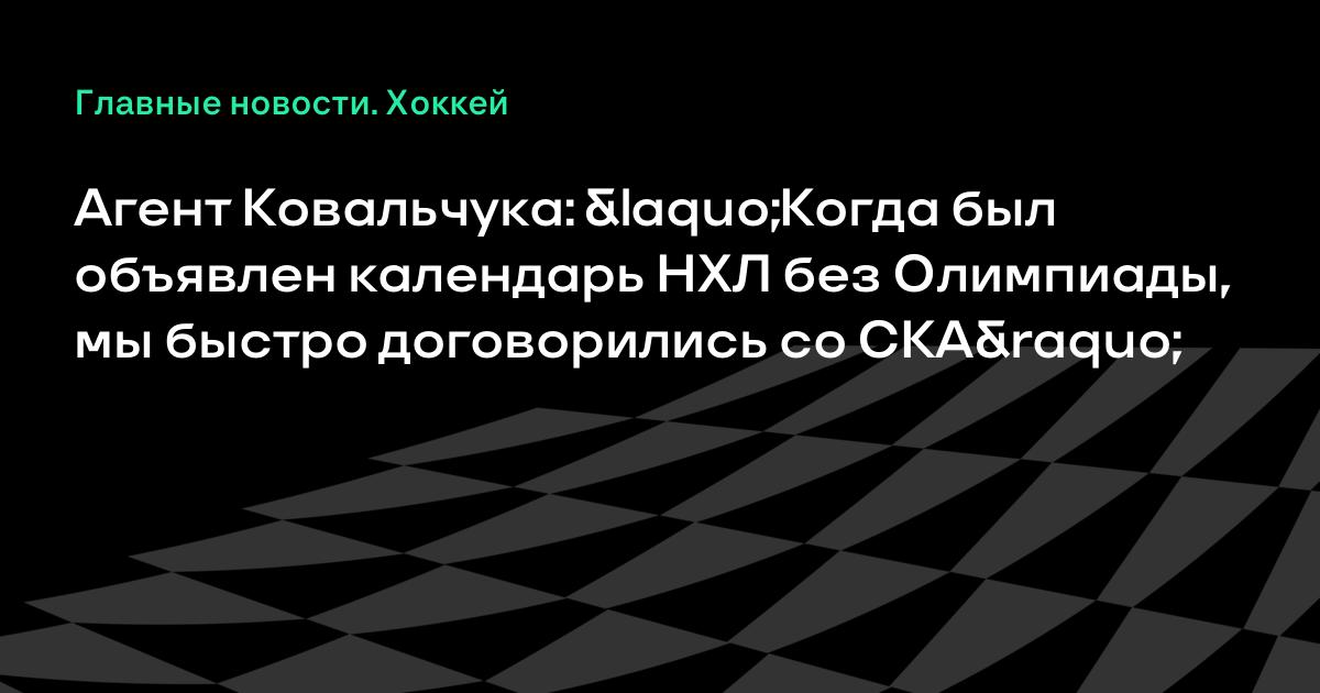 Агент Ковальчука: «Когда был объявлен календарь НХЛ без Олимпиады, мы быстро договорились со СКА»