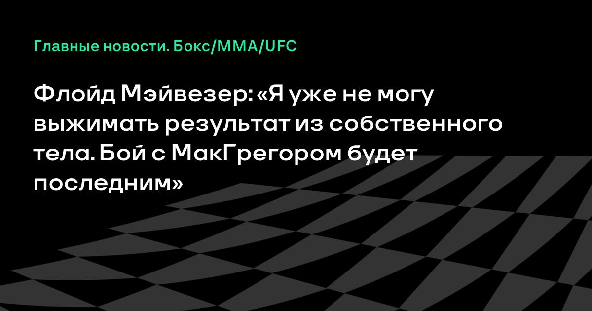 Я говорил сегодня с Элом [Хэймоном] об этом. Я не могу больше выжимать результат из своего тела. Это изнурительно. Подготовка к бою изнурительна. Я больше не могу. Тренировочный лагерь – это жесть. Это будет мой последний бой», – сказал Мэйвезер.