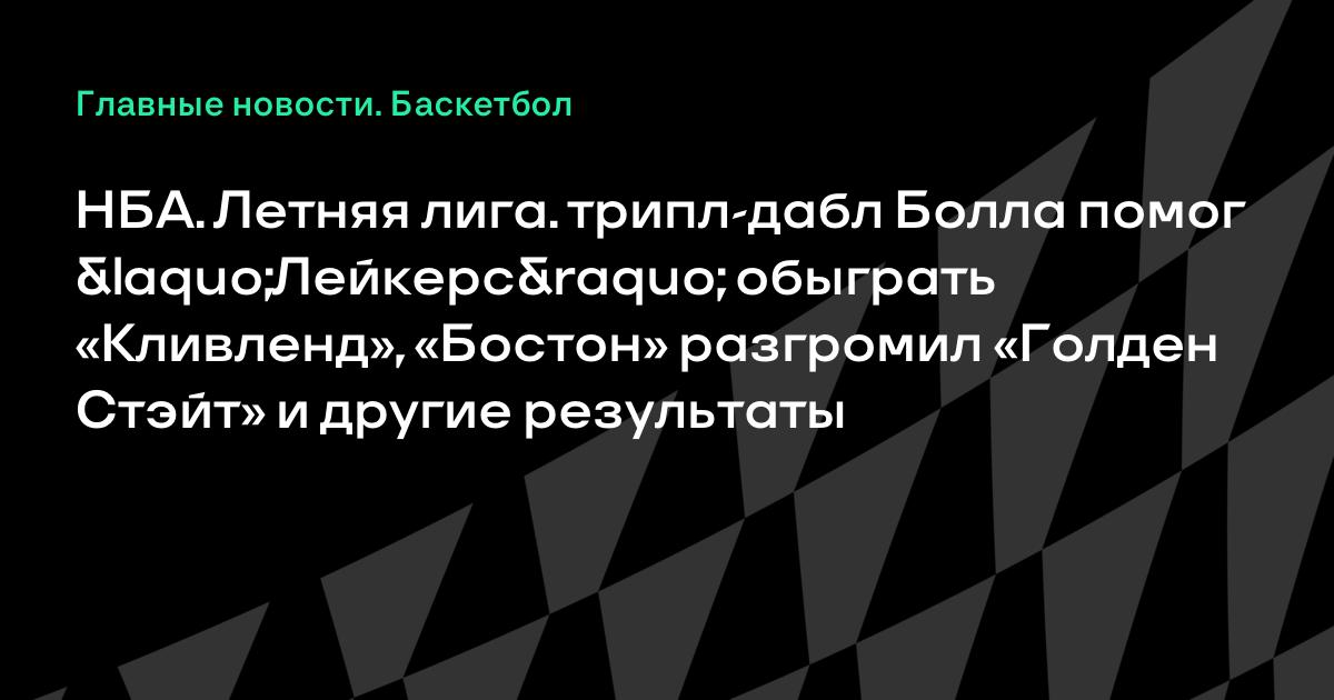 НБА. Летняя лига. трипл-дабл Болла помог «Лейкерс» обыграть «Кливленд», «Бостон» разгромил «Голден Стэйт» и другие результаты