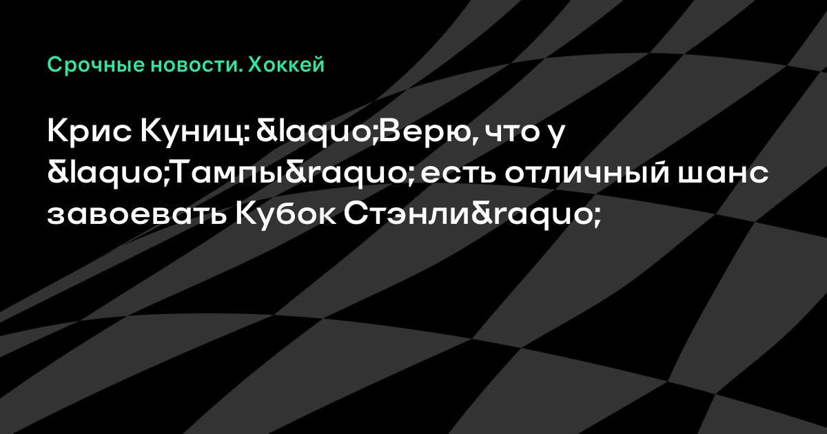 Крис Куниц: «Верю, что у «Тампы» есть отличный шанс завоевать Кубок Стэнли»