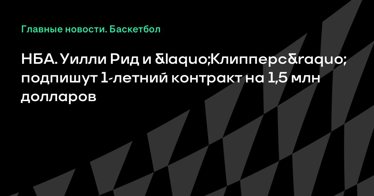 Центровой Уилли Рид продолжит карьеру в «Клипперс». Как пишет инсайдер ESPN Крис Хэйнс, стороны подпишут 1-летний контракт на 1,5 миллиона долларов.