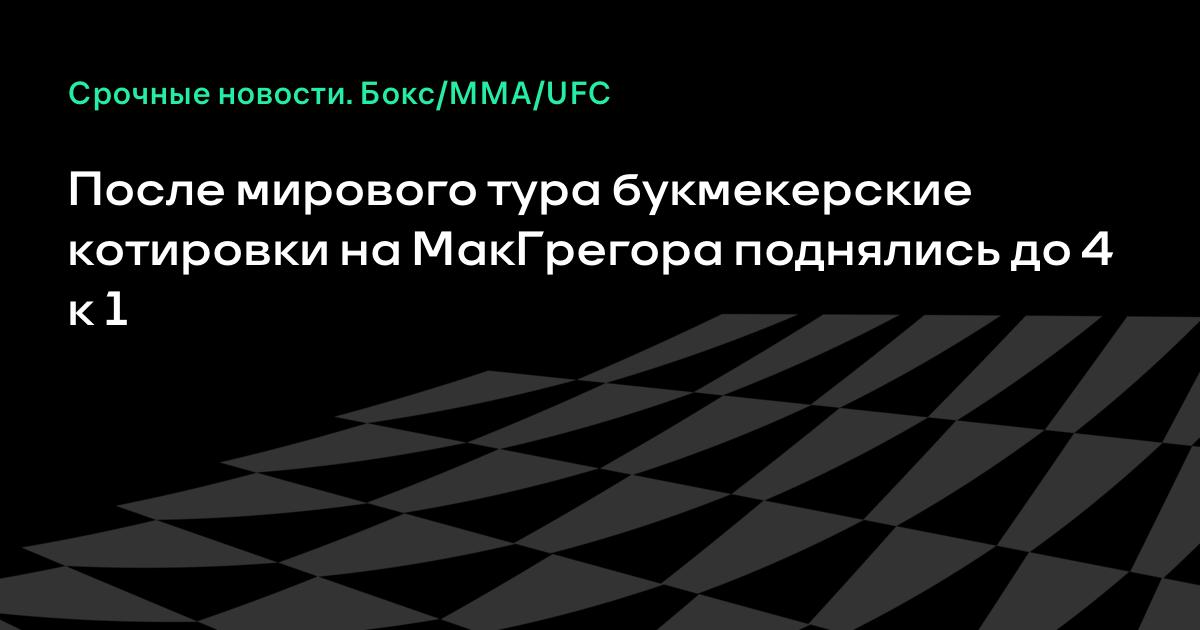 После мирового тура букмекерские котировки на МакГрегора поднялись до 4 к 1